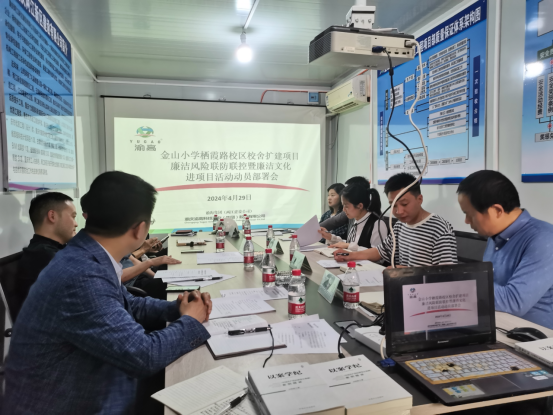 4月29日下午,為把廉潔理念注入項目建設(shè)全過程,將項目代建單位、施工單位、監(jiān)理單位、跟蹤審計單位等各方納入廉潔風(fēng)險防控范圍,壓實各方責(zé)任,渝海公司紀(jì)委、渝高集團(tuán)紀(jì)委聯(lián)合開展金山小學(xué)棲霞路校區(qū)校舍擴(kuò)建項目廉潔風(fēng)險聯(lián)防聯(lián)控暨廉潔文化進(jìn)項目活動。副總經(jīng)理陳閣琳出席。